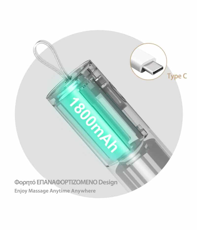 - Μεγάλη χωρητικότητα μπαταρίας 1800mAh, μπορεί να χρησιμοποιηθεί για μεγάλο χρονικό διάστημα. Εάν κάνετε μασάζ μόνο για 15 λεπτά την ημέρα, μπορείτε να χρησιμοποιήσετε τη συσκευή για 15 ημέρες με 1 μόνο φόρτιση