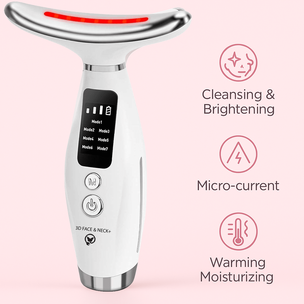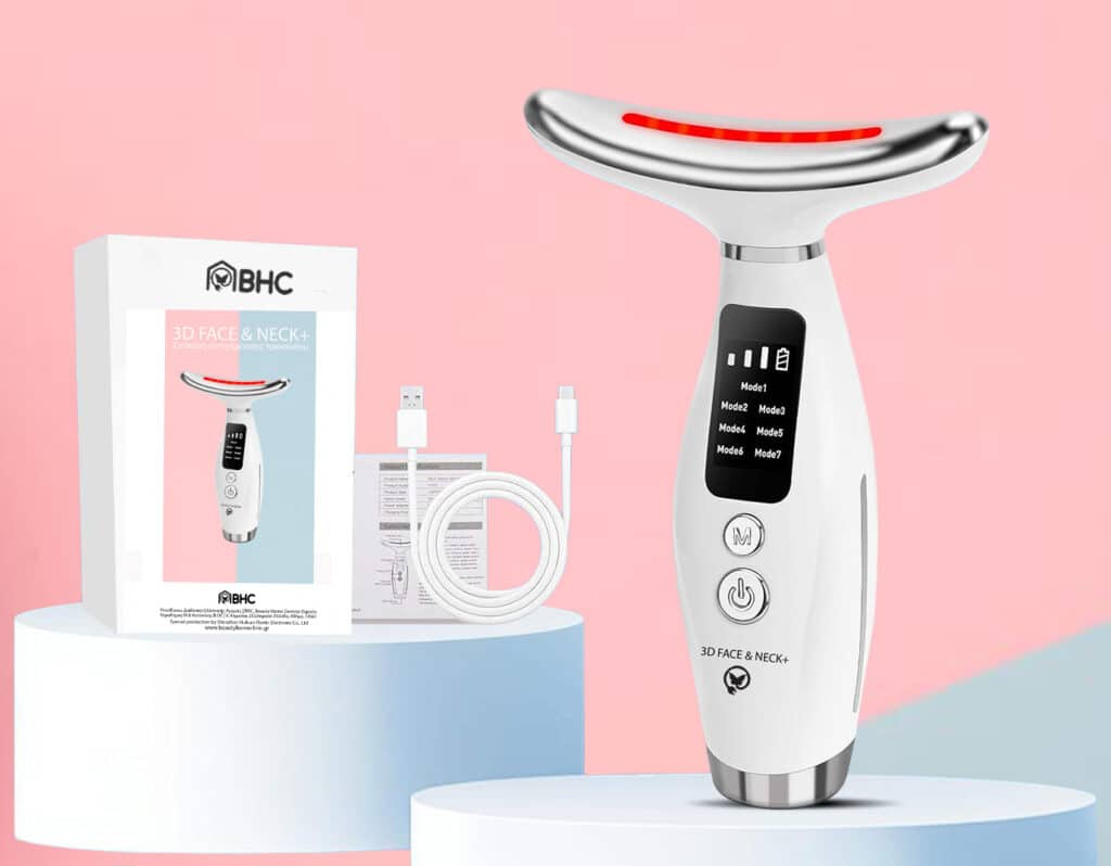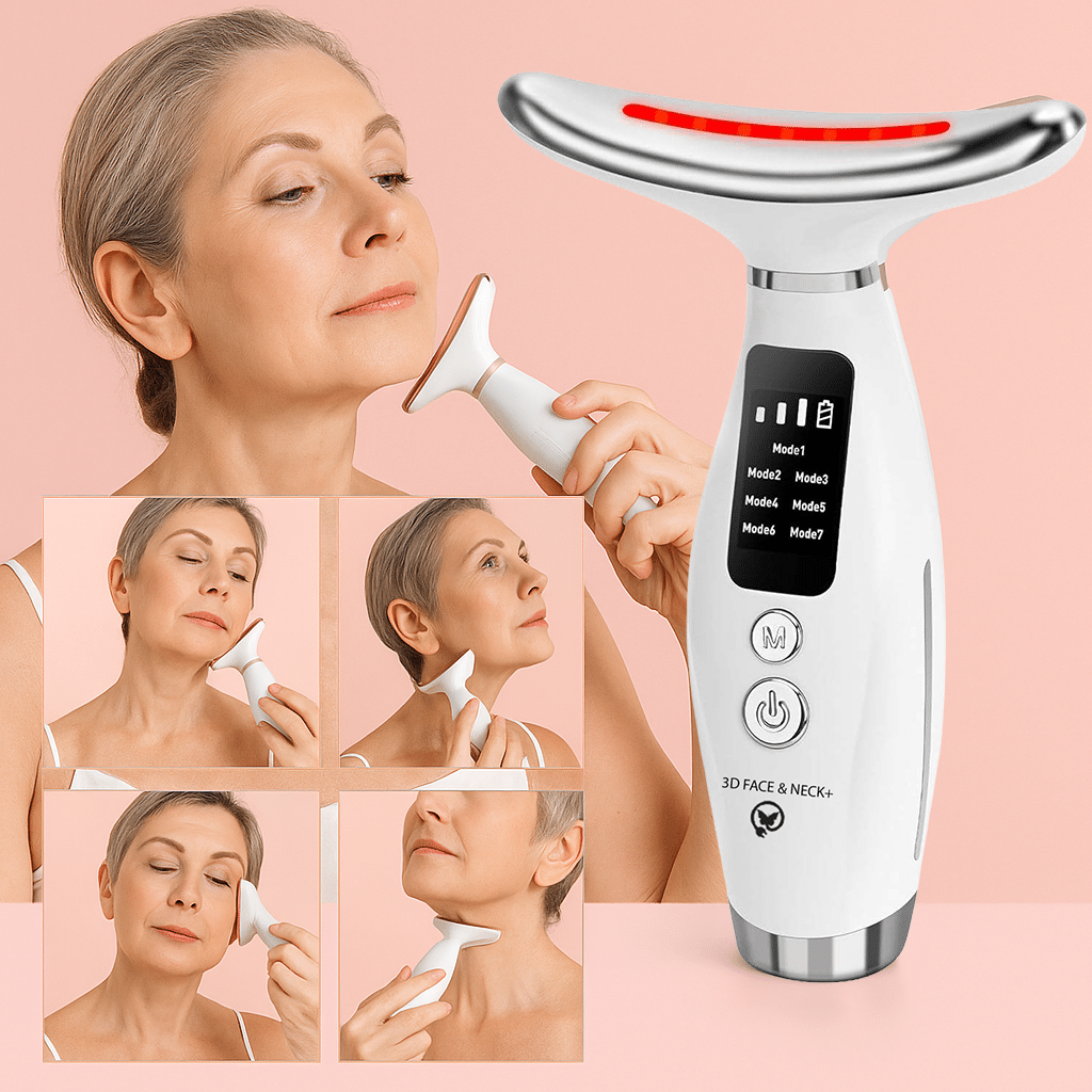 Το 3D FACE & NECK+ συνδυάζει δύο επαναστατικές τεχνολογίες σε μια συσκευή. Αποτελεί την εξέλιξη των τεχνολογιών για χρήση στο σπίτι face & neck lift της τελευταίας 5ετίας. Με βιοδιέγερση χιλιάδων μικροδονήσεων ανά λεπτό και 7 colors luminotherapy και xάρη στον εργονομικό του σχεδιασμό δελφινιού επιτυγχάνει lifting λαιμού και προσώπου. Νο.1 gadget που προσφέρει: